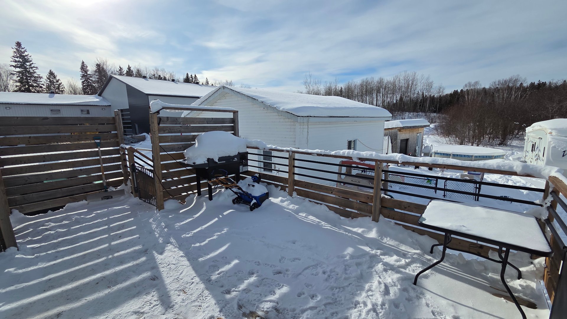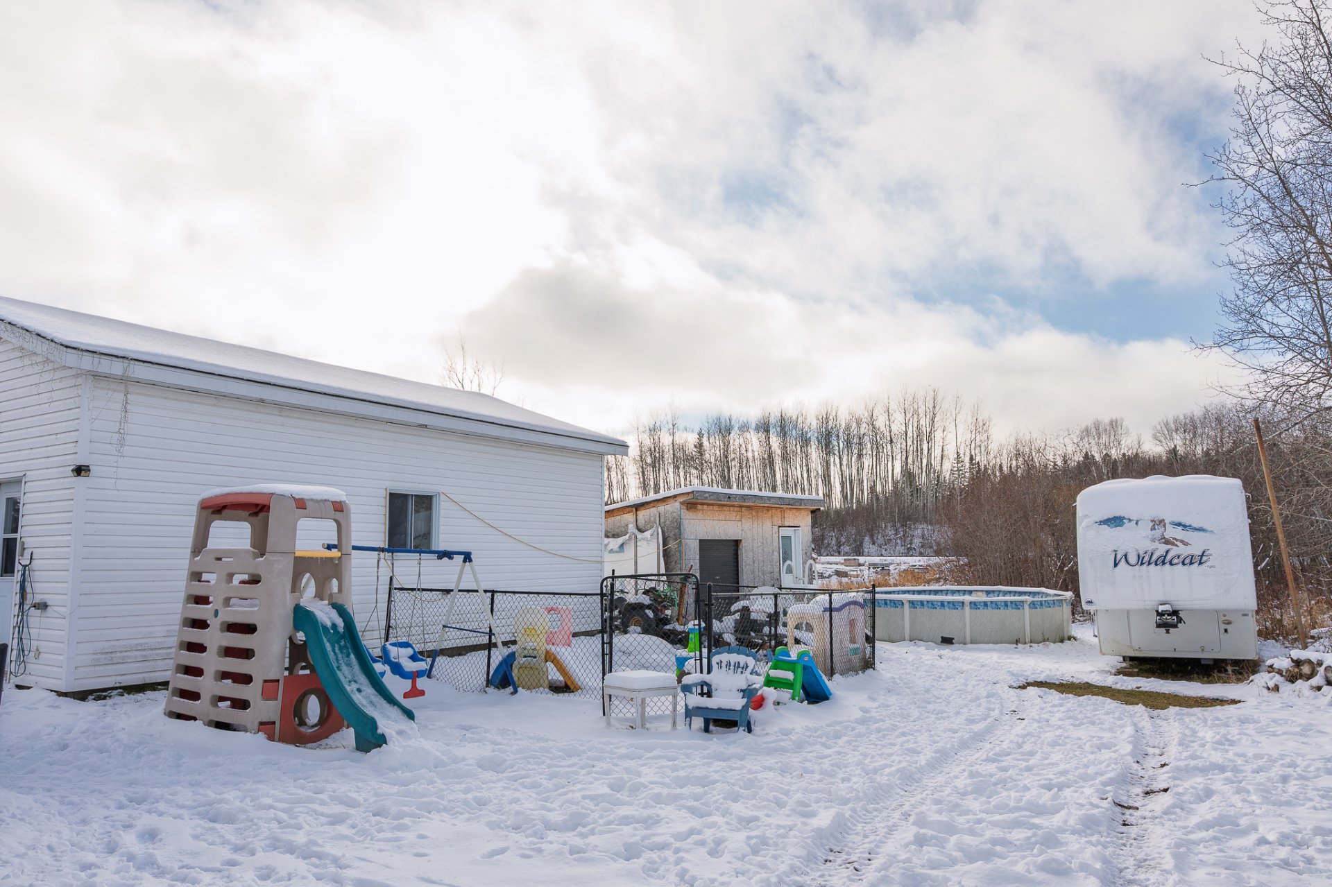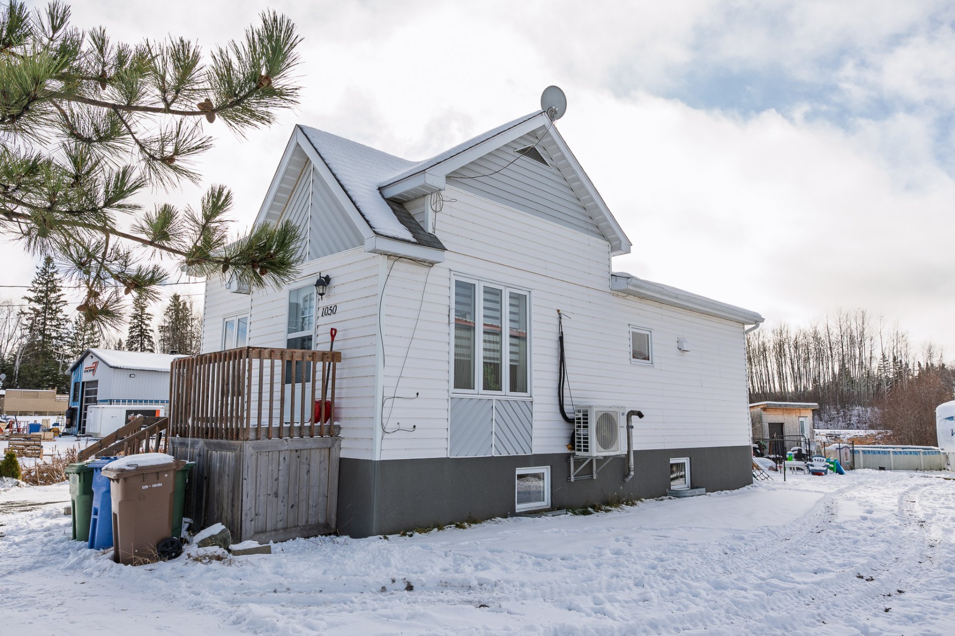 | piscine avec accessoires (pas de chauffe-eau), lave-vaisselle, tabourets pour comptoir, Balayeuse centrale et accessoires, rideaux avec pôles, stores, luminaires, établi du garage, bacs vert, bac bleu, poêle aux granules. | |