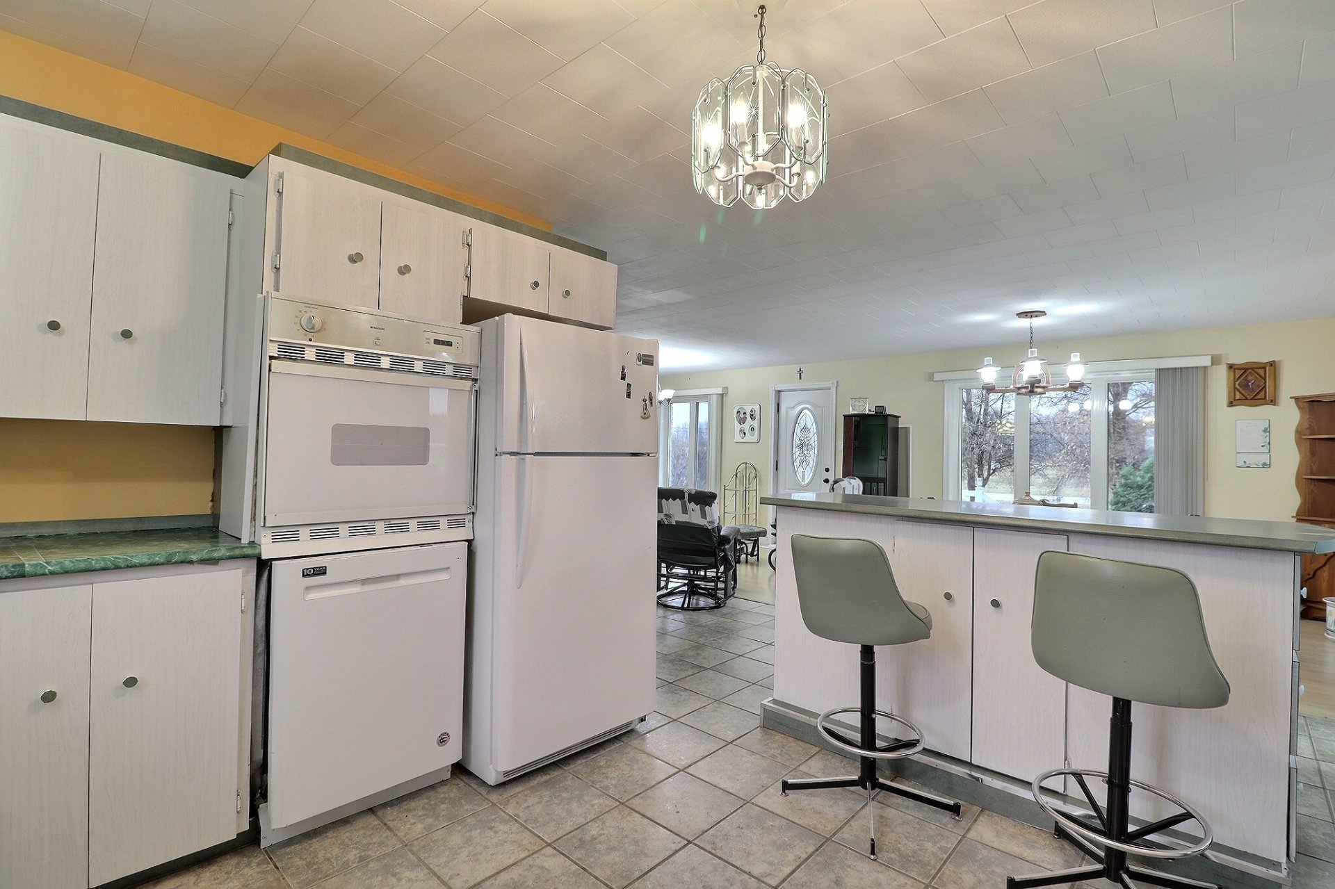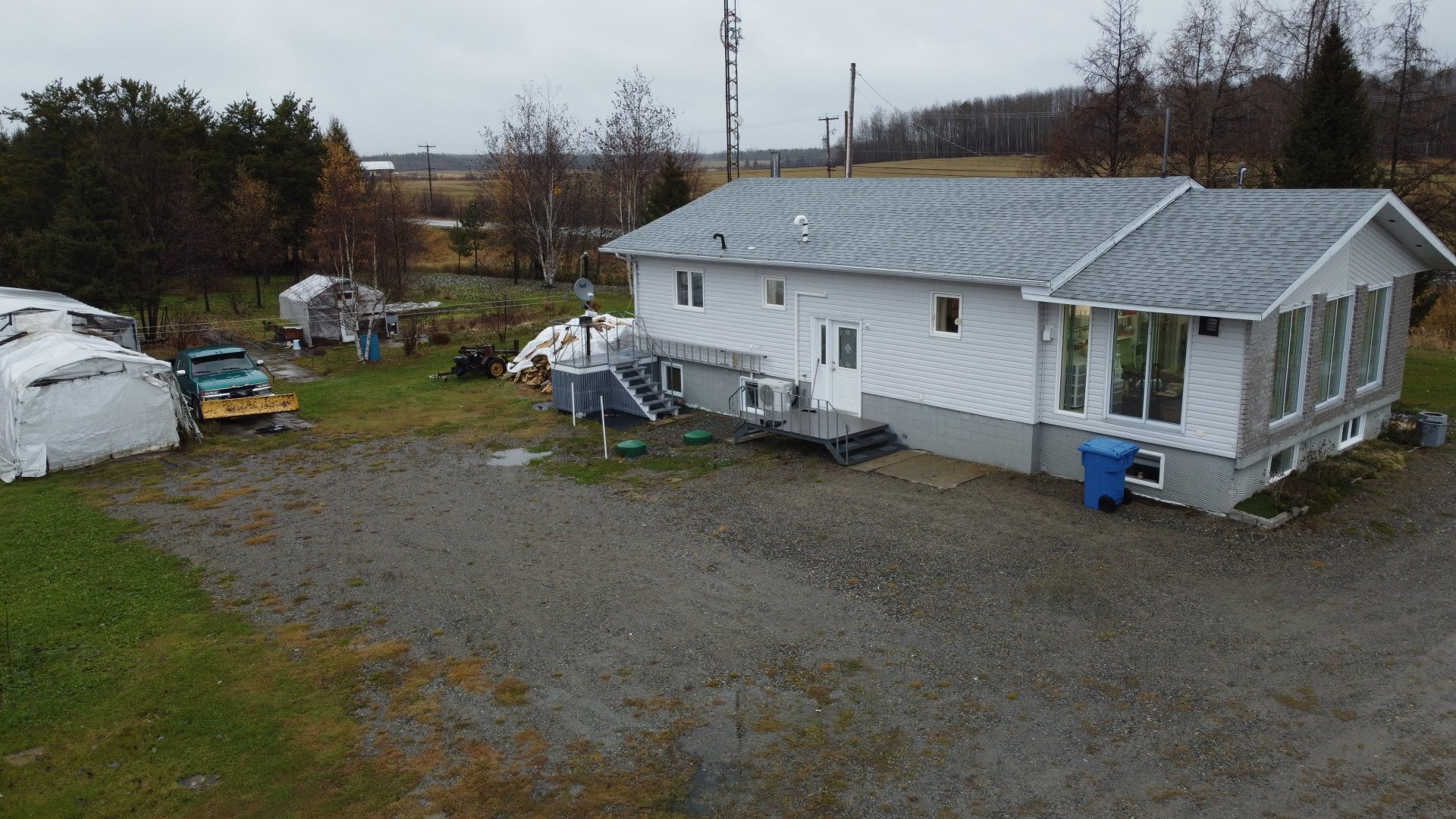 | Luminaires, pôles et rideaux, Lave-vaisselle, cuisinière encastré (vieux)mais fonctionne, plaque à cuisson +- 2020, serre, poêle à bois, abris tempo, Bac vert et bleu , 4 bancs de comptoirs, thermopompe 2020. | |